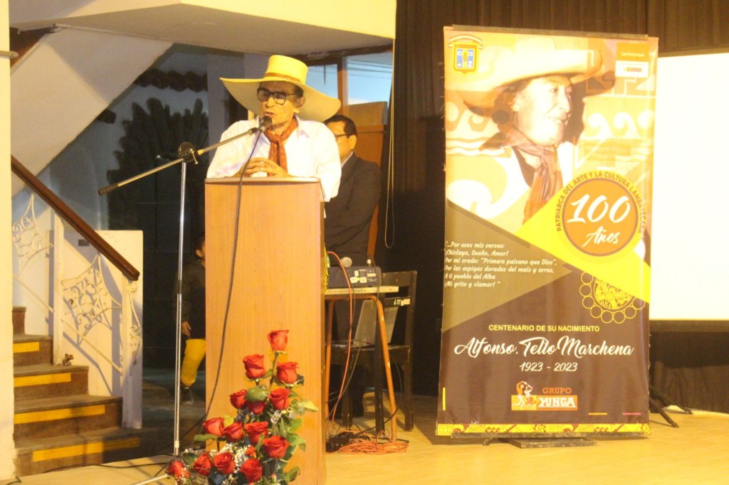 En la explanada de la Dirección Desconcentrada de Cultura, se rindió homenaje póstumo al patriarca del arte y la cultura lambayecana, Jesús Alfonso Tello Marchena, al conmemorarse del primer centenario de su nacimiento.