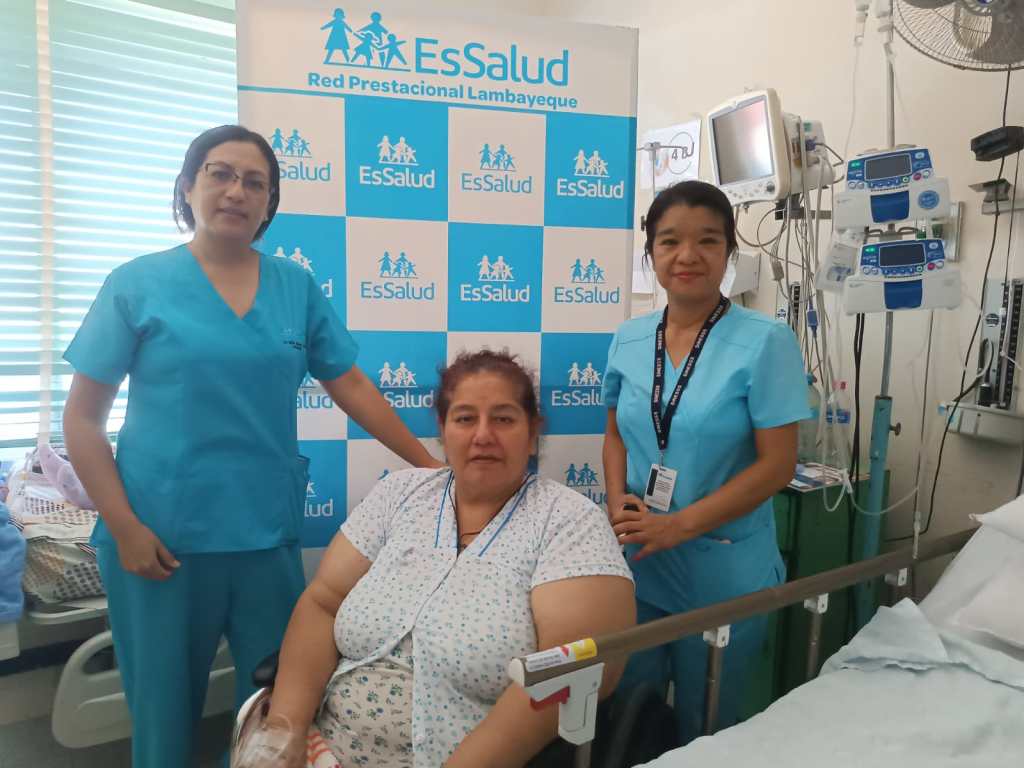 La paciente María del Carmen Carranza Bravo, agradeció al personal de la Red Lambayeque. Se mostró muy contenta con el procedimiento y la rápida reacción de los médicos especialistas de diferentes servicios.