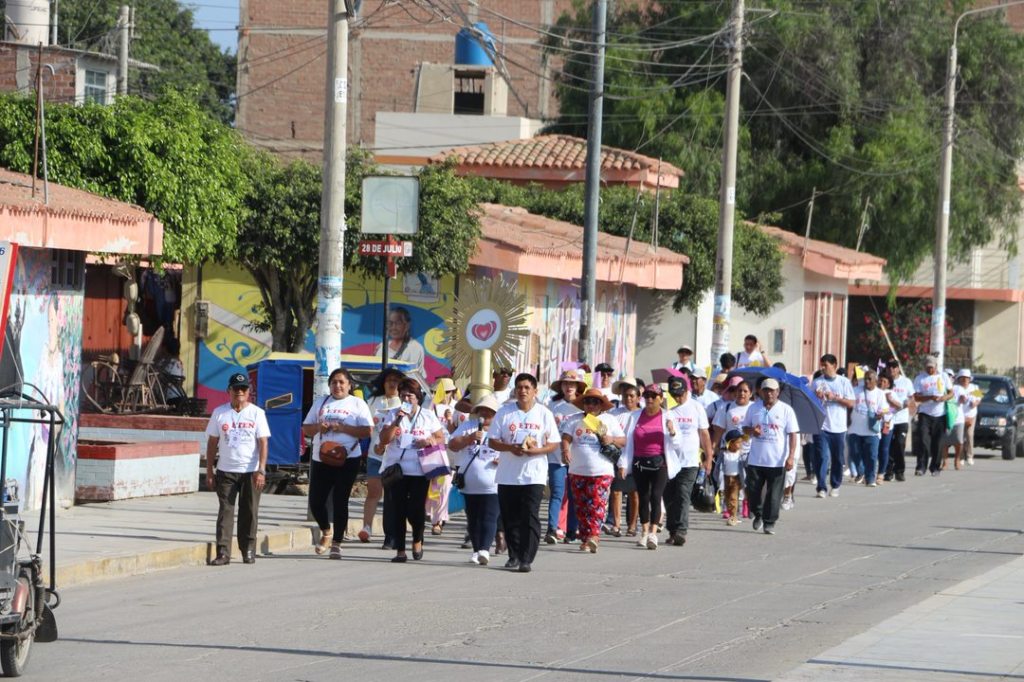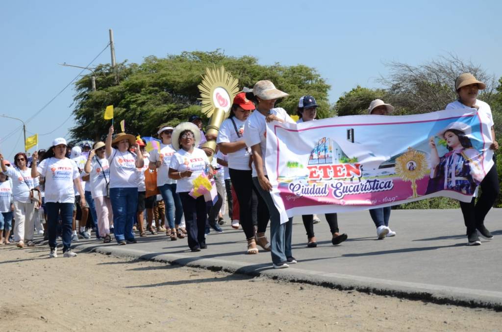 Decenas de personas participaron en la peregrinación denominada “Una caricia a Jesús Eucaristía”, que se desarrolló con éxito entre Monsefú hasta Ciudad Eten en honor a la Eucaristía y precisamente en la fiesta central del medio año en homenaje al Divino Niño del Milagro.