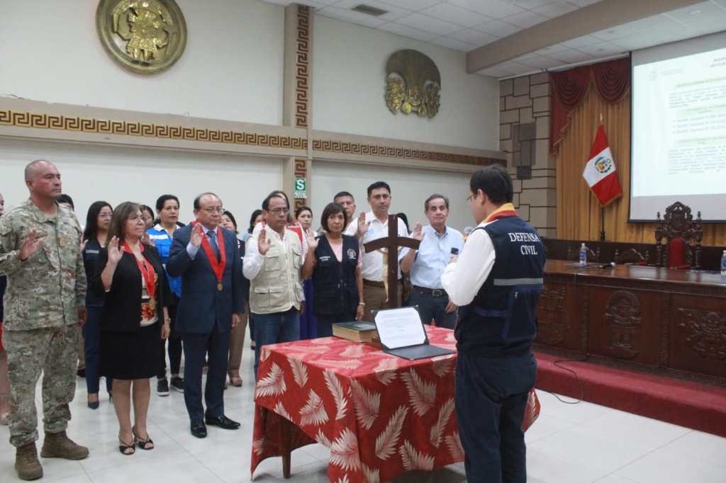 Sus declaraciones las brindó luego de jurar como integrante de la Plataforma Regional de Defensa Civil acto que ha estado a cargo del gobernador regional, Jorge Pérez Flores. En la cita ha quedado instalada la plataforma regional de Defensa Civil, a fin de articular acciones ante un escenario de riesgo por lluvias intensas que se puedan registrar el año 2024.