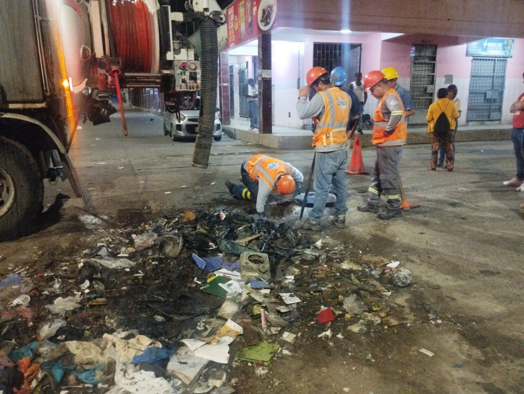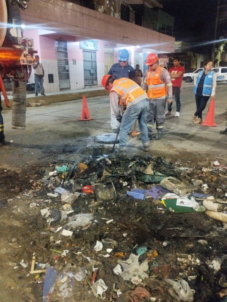 Los trabajos se han realizado en horas de la noche y continuarán esta mañana debido a que no se pudo culminar la limpieza, por la gran cantidad de basura y desechos que han acumulado en el interior del buzón.