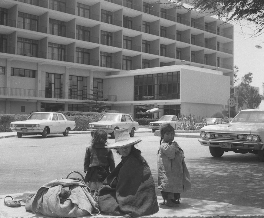 Hotel de Turistas, construido en 1958, en la calle Federico Villarreal. Desde 1996 cambió su nombre y estructura. En la vista su modernidad contrasta con una realidad que hasta hoy perdura.