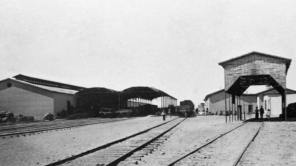 Estación central del Ferrocarril Pimentel-Chiclayo-Lambayeque. Funcionó desde 1873 hasta 1975. El de Puerto Eten a Chiclayo operó desde 1871 hasta 1965. Hoy aquí es el Centro Cívico de Chiclayo.