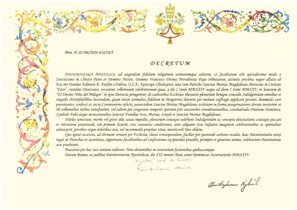 Desde el 22 de julio del 2024 al 22 de julio del 2025, el papa Francisco concederá una indulgencia plenaria a quienes peregrinen durante un Año Jubilar al templo parroquial de Ciudad Eten “Santa María Magdalena”, ubicado en el parque principal.