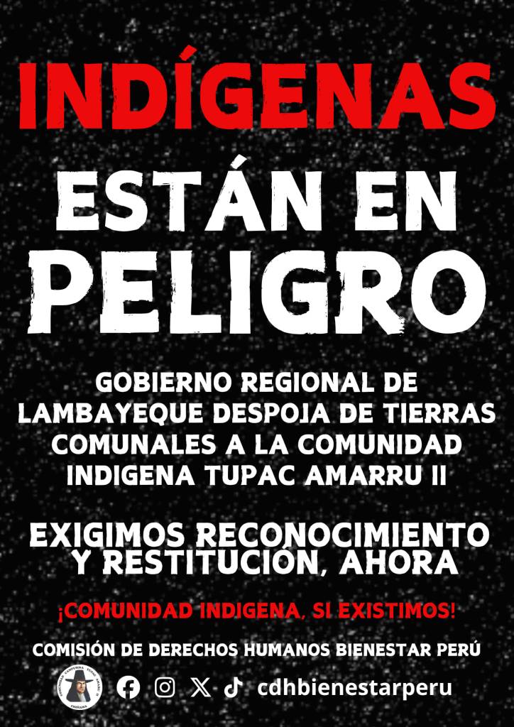 La Comunidad Campesina indígena Túpac Amaru II, ubicada en el distrito de Cañaris, Lambayeque, interpuso una demanda de amparo ante la Corte Superior de Justicia de la región, en contra del Gobierno Regional al que le exige la restitución de su personería jurídica y de sus tierras ancestrales. Este 22 de octubre se llevará a cabo la audiencia pública de vista de la causa en primera instancia en el 2° Juzgado Constitucional de Chiclayo.
