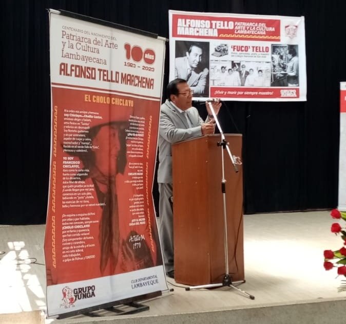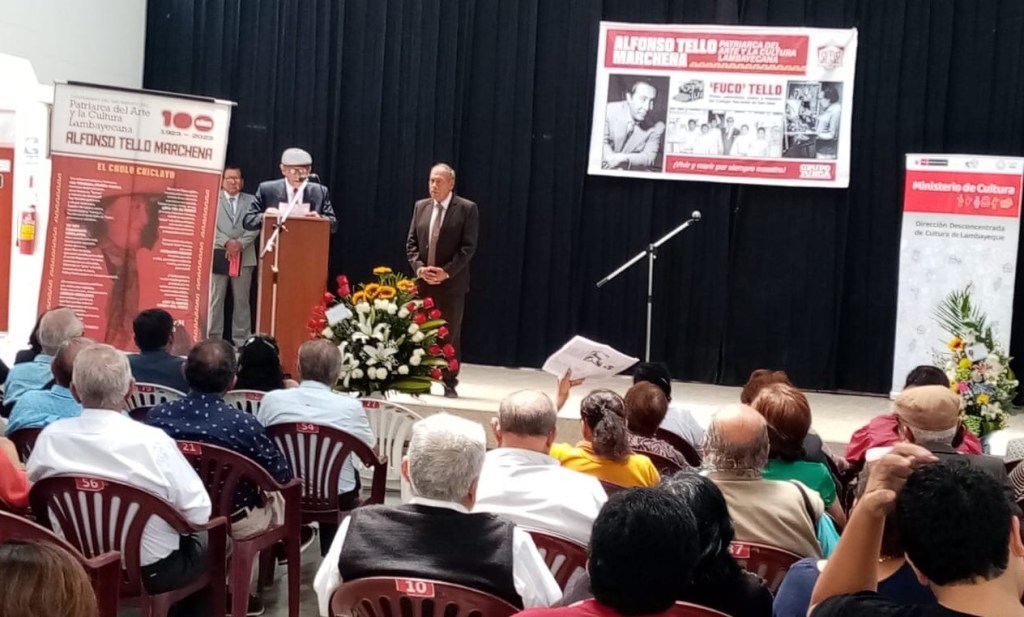 En la sede de la Dirección Desconcentrada de Cultura DDC Lambayeque, hoy miércoles se ha desarrollado la ceremonia de reconocimiento con Medalla de Personalidad Meritoria de Cultura a Don Alfonso «Fuco» Tello Marchena, Patriarca del Arte y la Cultura Lambayecana, periodista, pintor, poeta y maestro foklorista.