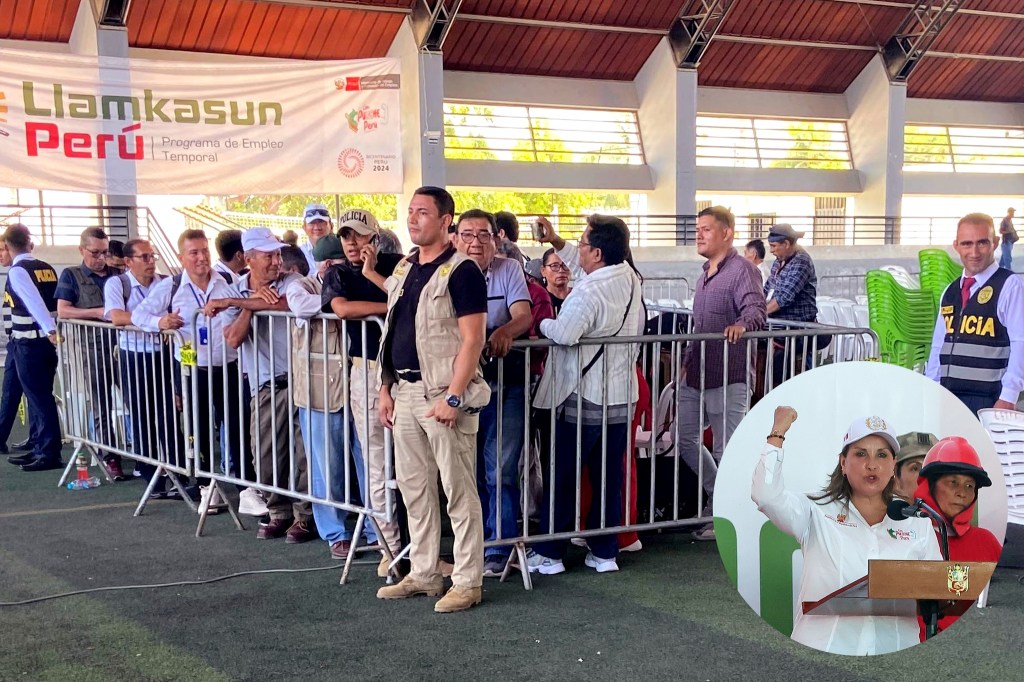 Los hombres y mujeres de prensa se acercaron para cubrir la presentación del programa de empleo temporal Llamkasun Perú, que contó con la participación de Boluarte, el ministro de Trabajo, Daniel Maurate Romero, y autoridades locales.