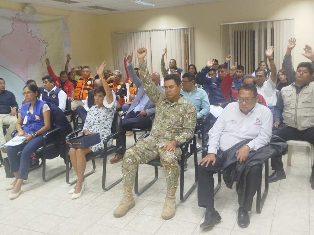 La Plataforma Regional de Defensa Civil de Lambayeque, en respuesta a la declaratoria de emergencia por el Decreto Supremo N.º 134-2024 PCM, que clasifica a los 32 distritos de la región como de “Riesgo Muy Alto” realizó esta noche una reunión de emergencia para abordar esta crítica situación.