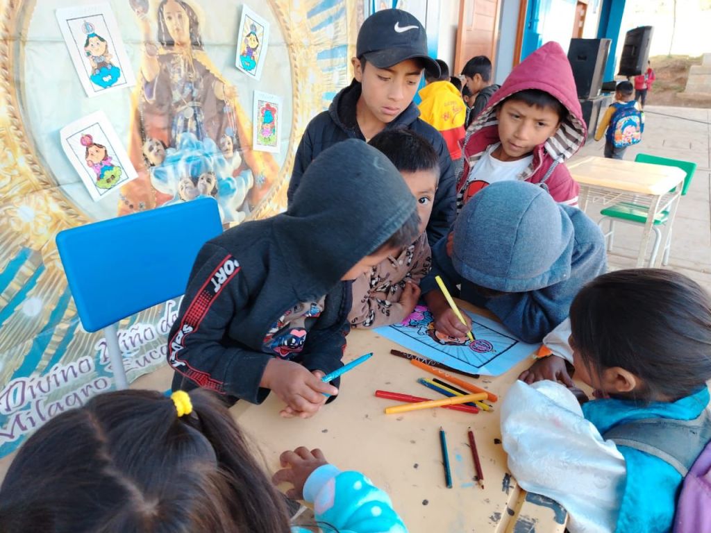 Unos 200 niños vivieron un maravilloso encuentro espiritual esta Navidad: antes de recibir regalos y disfrutar su chocolatada, pintaron con amor diversas ilustraciones del Niño Jesús, inspiradas en la imagen aparecida hace 375 años en la hostia consagrada de Ciudad Eten. Este emotivo evento se realizó en Pamaca, uno de los 38 caseríos del distrito de Kañaris (Ferreñafe), región Lambayeque.