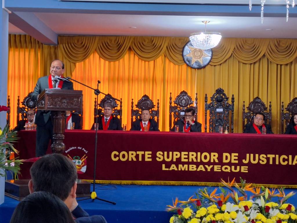 En el acto, celebrado en el Colegio de Abogados de Lambayeque, el Dr César William Bravo Llaque, presidente electo de la Corte Superior de Justicia de Lambayeque para el periodo 2025-2026, pronunció su discurso de apertura del Año Judicial. Previamente, invitó a la mesa de honor a tres jueces superiores: Blanca Cervera, Margarita Zapata Cruz y Raúl Solano Chambergo.