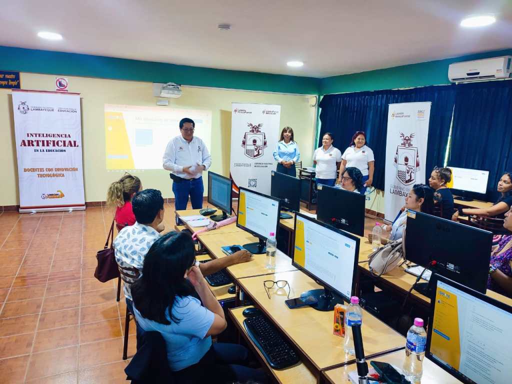 El gerente regional de Educación de Lambayeque, Juan Orlando Vargas Rojas, dijo que se trata de una “capacitación sobre inteligencia artificial (IA) aplicada a la planificación curricular y a la mejora de los aprendizajes en la región Lambayeque, en la modalidad presencial, teórico y práctico. Y esto es solamente la primera etapa, porque de aquí vamos a hacerlo presencialmente para todos los docentes de la región Lambayeque, sin excepción alguna”.