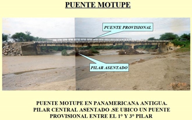 FOTOS: Puente Reque (marzo 1998), FOTO 2: puente Tablazos en Chongoyape, vía a Carhuaquero (marzo 2017), FOTO 2: puente Cascajal en Olmos, FOTO 4: puente Motupe, entre otros casos. (Imágenes del Facebook del ingeniero Arturo Rodríguez Serquén).
