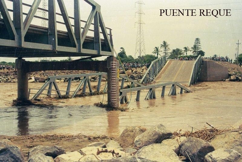 Foto de portada: Puente de Reque desplomado en marzo de 1998. (Imagen tomada del libro “Alma lambayecana en la mirada de los fotoperiodistas Quiroga. Colección inédita de hace medio siglo)