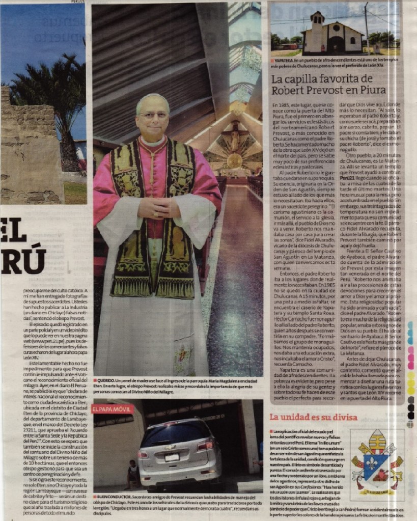 Este lamentable hecho no fue impedimento para que Prevost continúe impulsando ante el Vaticano el reconocimiento oficial del milagro. Ayer, en el diario El Peruano, se publicó la ley que “declara de interés nacional el reconocimiento como ciudad eucarística a Eten, ubicada en el distrito de Ciudad Eten de la provincia de Chiclayo, del departamento de Lambayeque, en el marco del Decreto Ley 23211, que aprueba el ‘Acuerdo entre la Santa Sede y la República del Perú’”. Con esto, se espera que también se inicie la construcción del santuario del Divino Niño del Milagro sobre un terreno de más de 10 hectáreas, que el entonces obispo gestionó para que sea un centro de peregrinación y de fe.