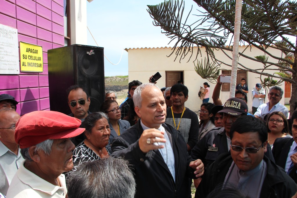 Los directivos del comité multisectorial recibieron al obispo fuera de la capilla, con la puerta enrejada, cerrada con llave. Adentro permanecían varias personas y se divisaba una nueva imagen del Niño del Milagro que habían mandado confeccionar, pues la original se hallaba en la iglesia del parque principal luego que retornara de Trujillo bendecida por el Papa Francisco.