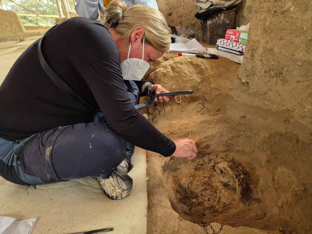 “Entre los entierros de niños, hay uno en particular vinculado con fina cerámica y joyas de piedra, madera y metal, que evidencian su alto linaje y resultan de gran importancia para comprender el patrón funerario de Túcume. Se trata de un niño de aproximadamente dos o tres años, según la información de la doctora Marla Toyne, investigadora de la Universidad de Florida Central, en Orlando, Estados Unidos, y encargada del análisis de los restos humanos registrados en el Complejo Arqueológico de Túcume desde el año 2001”, informó Bernarda Delgado Elías, directora del Museo de Sitio Túcume.