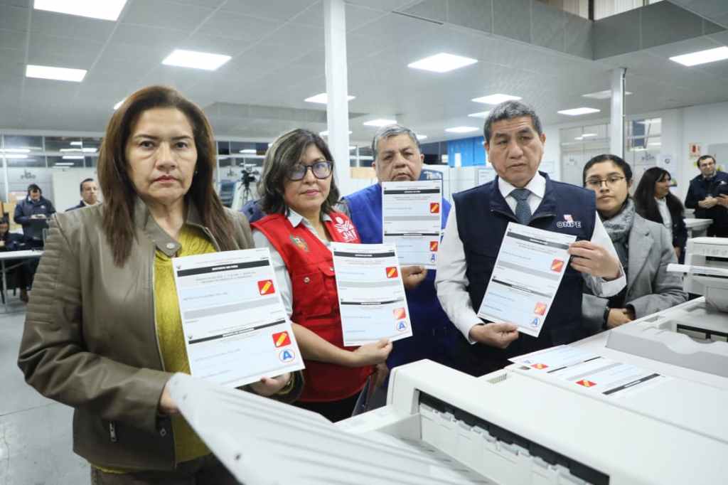 En el acto estuvieron presentes fiscalizadores del Jurado Nacional de Elecciones (JNE), representantes del Registro Nacional de Identificación y Estado Civil (Reniec) Defensoría del Pueblo y la notaria pública Ruth Alessandra Ramos Rivas. De manera ininterrumpida, del 2 al 4 de setiembre, se imprimirá un total de 3,345 cédulas de sufragio, incluyendo las de reserva.