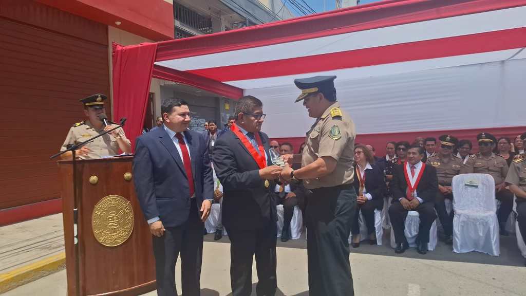 Posteriormente, se efectuó el corte de cinta inaugural, en el que participaron el Dr. César William Bravo Llaque, presidente de la Corte Superior de Justicia de Lambayeque; el general PNP Luis Ángel Bolaños Melgarejo, jefe de la Región Policial Lambayeque; la gobernadora regional (e) de Lambayeque, Flerida Flor Saavedra López; el Dr. Jorge Puicón Uceda, director distrital de la Defensa Pública de Lambayeque; el Dr. Gilmer Robinson Jara Vergara, presidente de la Junta de Fiscales Superiores de Lambayeque; los congresistas Alejandro Aguinaga Recuenco y Méd. Raúl Huamán Coronado; el Ing. Élber Requejo Sánchez, alcalde de la Municipalidad Distrital de José Leonardo Ortiz; y el Lic. Edwin Vásquez Sánchez, alcalde de la Municipalidad Distrital de La Victoria.