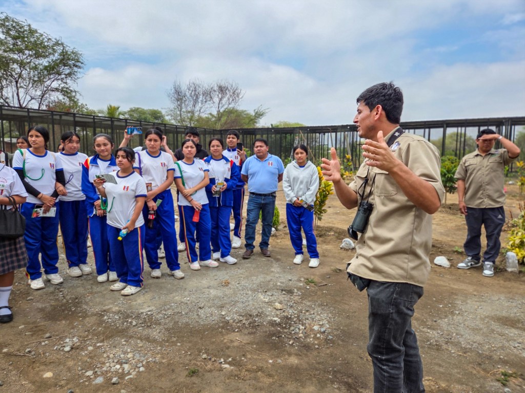 Los escolares de las instituciones educativas Julio Ponce Antúnez de Mayolo y San Pedro Nolazco recorrieron las instalaciones de Crax Perú, donde conocieron de cerca las acciones que se realizan para conservar la Pava aliblanca (Penelope albipennis), especie emblemática del bosque seco que se encuentra en peligro crítico. También observaron otras especies silvestres rescatadas del tráfico ilegal, comprendiendo así los retos que enfrenta la conservación en el país.